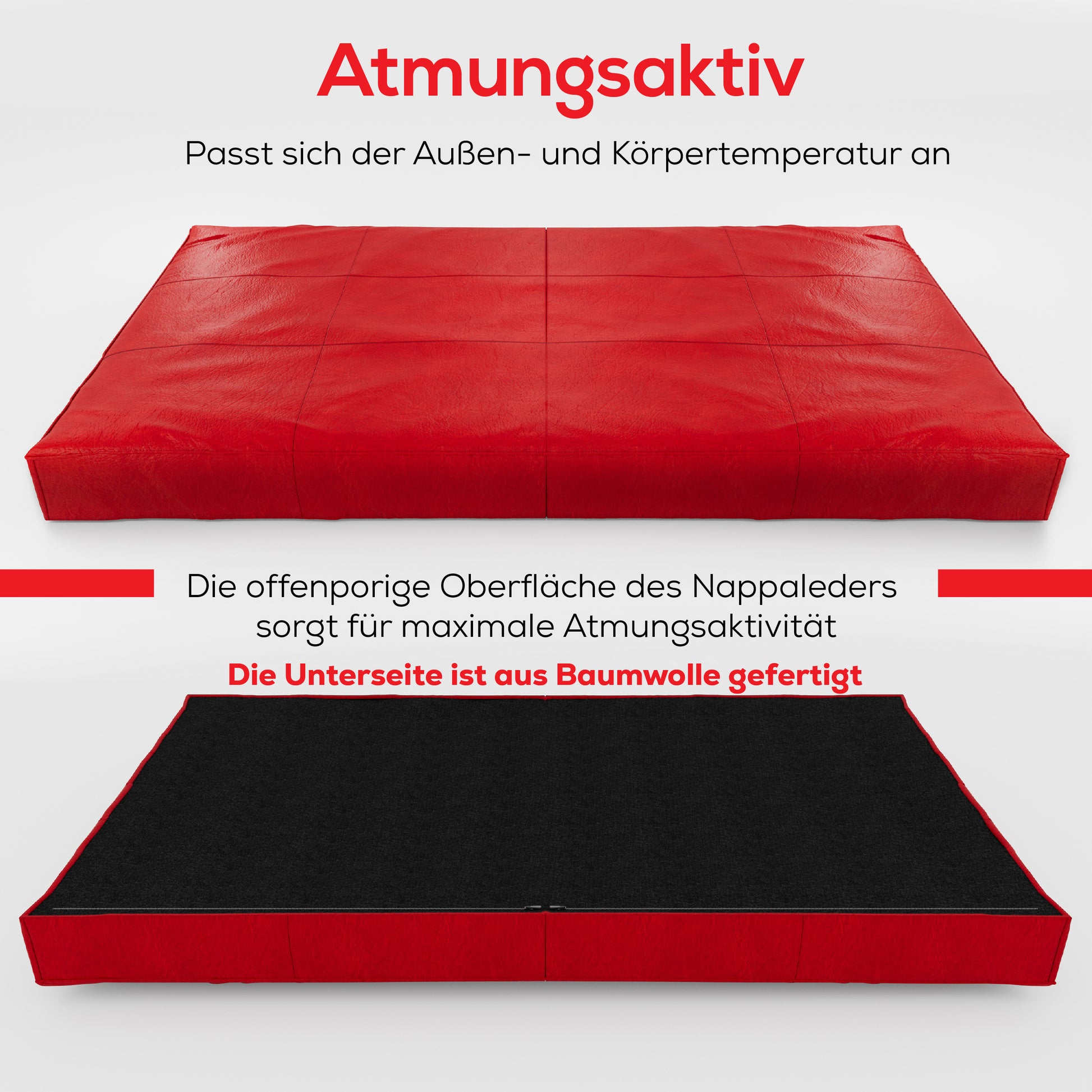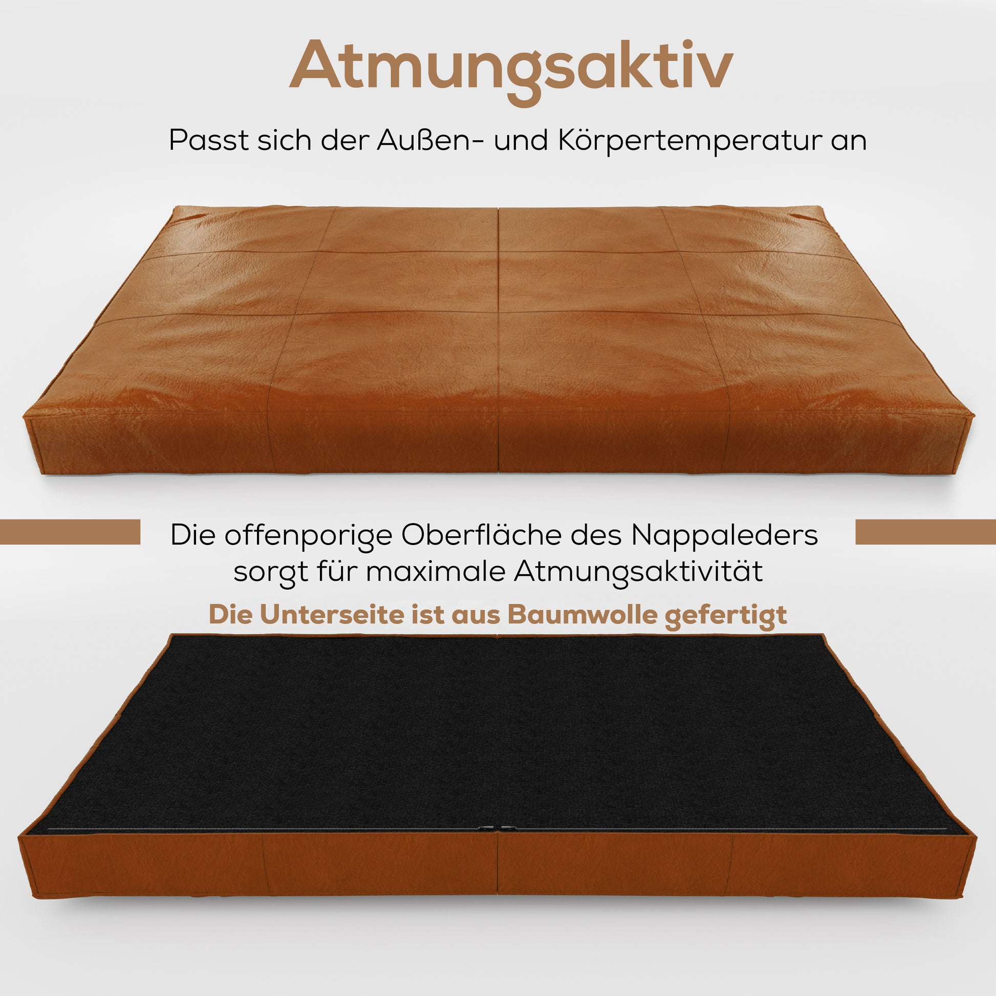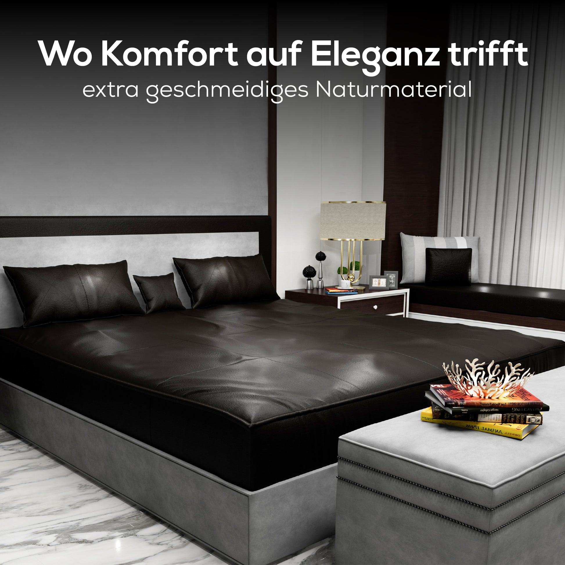 Sehr hochwertiger Leder Matratzenbezug, der aus weichem und schönem Rinds-Nappaleder gefertigt wurde. Das Leder ist besonders atmungsaktiv und temperierend: Im Winter wärmt es - im Sommer kühlt es und passt damit zu jeder Jahreszeit.