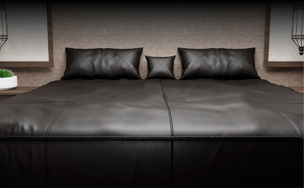 Bei der Herstellung der Bettwäsche legen wir viel Wert auf Qualität und verwenden daher nur hochwertiges Nappa-Leder. Die Seitenteile des Matratzenbezuges besten ebenfalls aus Leder. Die Unterseite ist durch ein Baumwollstoff gefertigt.
